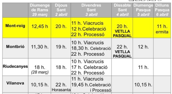 69/2026 Redacció 31-03-2026 La Parròquia de Sant Miquel Arcàngel de Mont-roig ha fet pública la programació dels actes de Setmana Santa, no solament de casa nostra sinó també