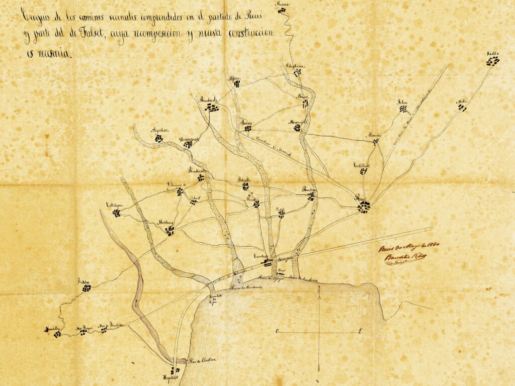 El mont-rogenc Baudili Ribot Nolla va dedicar una part important de la seva vida professional a fer projectes de camins. En un text del 2016 escrivia: “Els camins cada cop prenen més importància, a mitjans del segle XIX el moviment de persones i mercaderies augmenta. Ho constata la proliferació de llibres on s’esmenten camins i itineraris per anar d’un indret a un altre. Del 1860 és el Croquis de los caminos vecinales comprendidos en el partido de Reus y parte del de Falset, cuya recomposición y nueva construcción es necesaria. Reus 30 de mayo de 1860 de Baudili Ribot. De Mont-roig hi ha assenyalats els principals camins que l’unien amb els pobles del voltant. Com el camí de Cambrils i el que va a Montbrió, Riudoms i Reus. D’altres, estan a mig o per construir: el de Pratdip, que ara ja discorre més o menys en línia recta, un cop passat el Riu de Llastres, sembla que estigui per construir; aquest deu correspondre a l’actual carretera T-310. També el que va directe a Colldejou; el de Vilanova o el de l’Arbocet. També està per fer un de Vilanova a Colldejou…”[2].