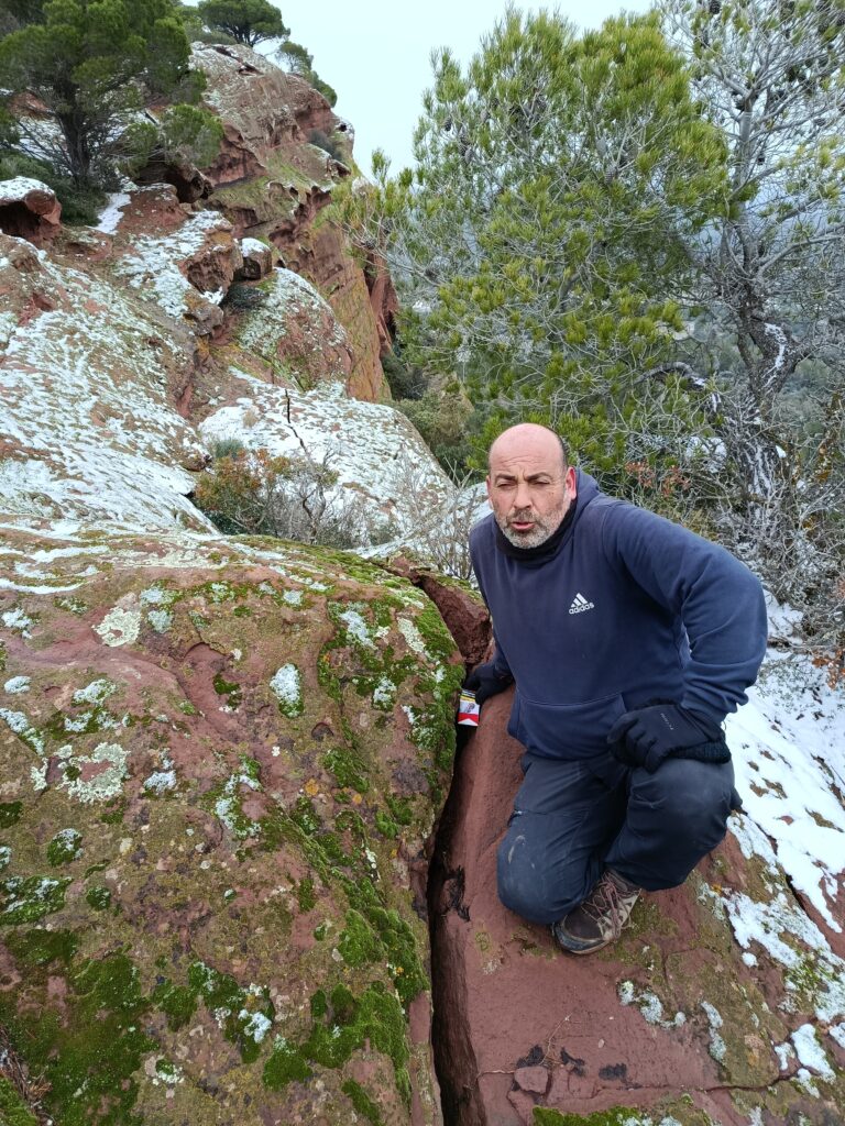 L’altre dia, dilluns 5 de gener, aprofitant que va nevar una mica, que feia fred i que teníem ganes de caminar, vam anar a l’Areny a captar unes quantes fotos, veure si hi havia neu i, al mateix temps, vam pensar que podíem observar les esquerdes que ara farà un parell d’anys que vam detectar (podeu mirar Ressò mont-rogenc dels dies: 22-03-2023, 19-07-2023, 12-02-2024 i 26-05-2025).