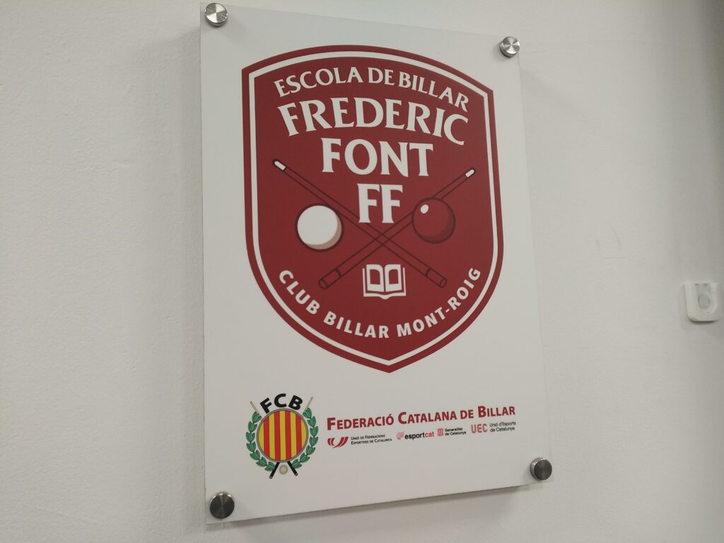 En el marc de la Festa Major de Mont-roig, el passat divendres 26-09-2025 el Club de Billar va inaugurar una Escola de Billar que du el nom de Frederic Font (e.p.r.) l’alma mater d’aquest esport recreatiu de Mont-roig durant tota la seva vida i que el 1980 va fundar, amb d’altres socis, el Club de Billar que és un autèntic referent de les comarques meridionals del Principat. Força gent de fora vila en són socis i gaudeixen de les modernes instal·lacions. Actualment en són 58 que continuen al local del carrer de Vinyols (Centre Esportiu i Recreatiu).