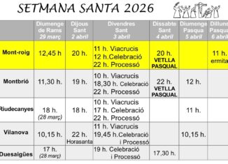 La Parròquia de Sant Miquel Arcàngel de Mont-roig ha fet pública la programació dels actes de Setmana Santa, no solament de casa nostra sinó també de les parròquies dels altres pobles d’on mossèn Amador Canaldas n’és responsable.
